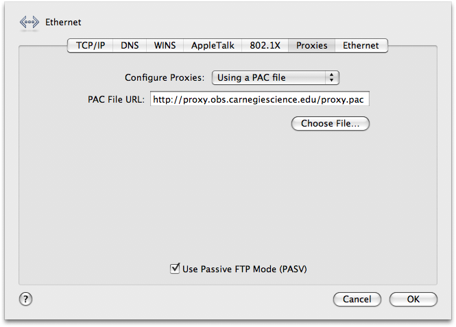 Enter http://proxy.obs.carnegiescience.edu/proxy.pac into the PAC File URL box.